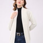 Women Off White Self Design Collar Full Sleeve Cardigan