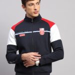Men Blue Printed Collar Full Sleeve Sweatshirt