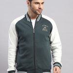 Men Green Self Design Collar Full Sleeve Sweatshirt Varsity Collection