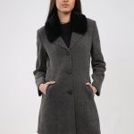 Women Grey Printed Collar Full Sleeve Coat