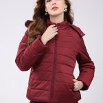 Women Maroon Solid Hooded Full Sleeve Jacket