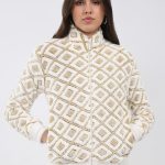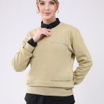 Women Beige Printed Round Neck Full Sleeve Sweatshirt