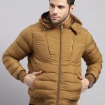 Men Khaki Solid Hooded Full Sleeve Jacket