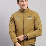 Men Mustard Solid Collar Full Sleeve Jacket